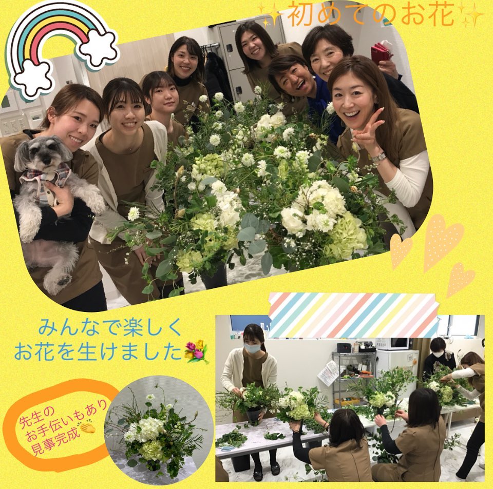 こんにちは少し前のお話です🤗以前投稿もしていますが、楽しいイベントだったので改めて投稿させていただきます❣️フラワーアレンジメントスタッフ全員初めてのチャレンジみんな豪快にカットし思いのままに生けましたフラワーアレンジメントのじゅんこ先生が楽しくトークをしながら生け方を教えてくれたので、終始みんなの笑い声が️本当に楽しくてあっという間な時間を過ごしました朝早くから市場でお花を準備して下さったじゅんこ先生や、お花に触れる機会がなかったので、このよ... -