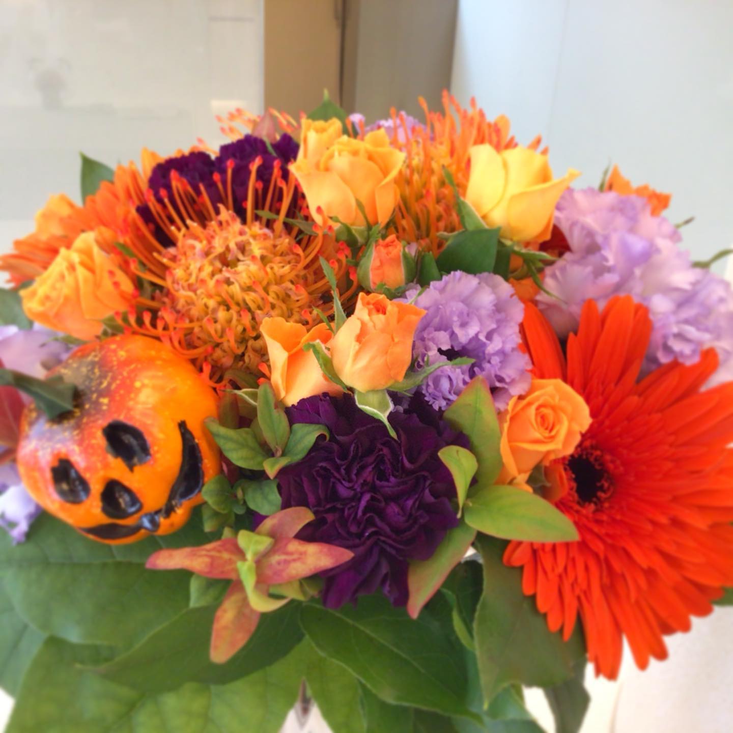 10月のお花今月のお花は、・ガーベラ(アイマール)・ルスカス・スプレーバラ・カーネーション・トルコキキョウ・ピンクッション・ヒペリカム・レモンリーフハロウィンカラーですね🧡かぼちゃがかわいいですね️#矯正歯科クリニック柏の葉#矯正専門医#マウスピース矯正#小児矯正 #拡大装置#表側矯正 #裏側矯正#柏の葉キャンパス駅 #徒歩4分#人生がときめく矯正を#鈴木