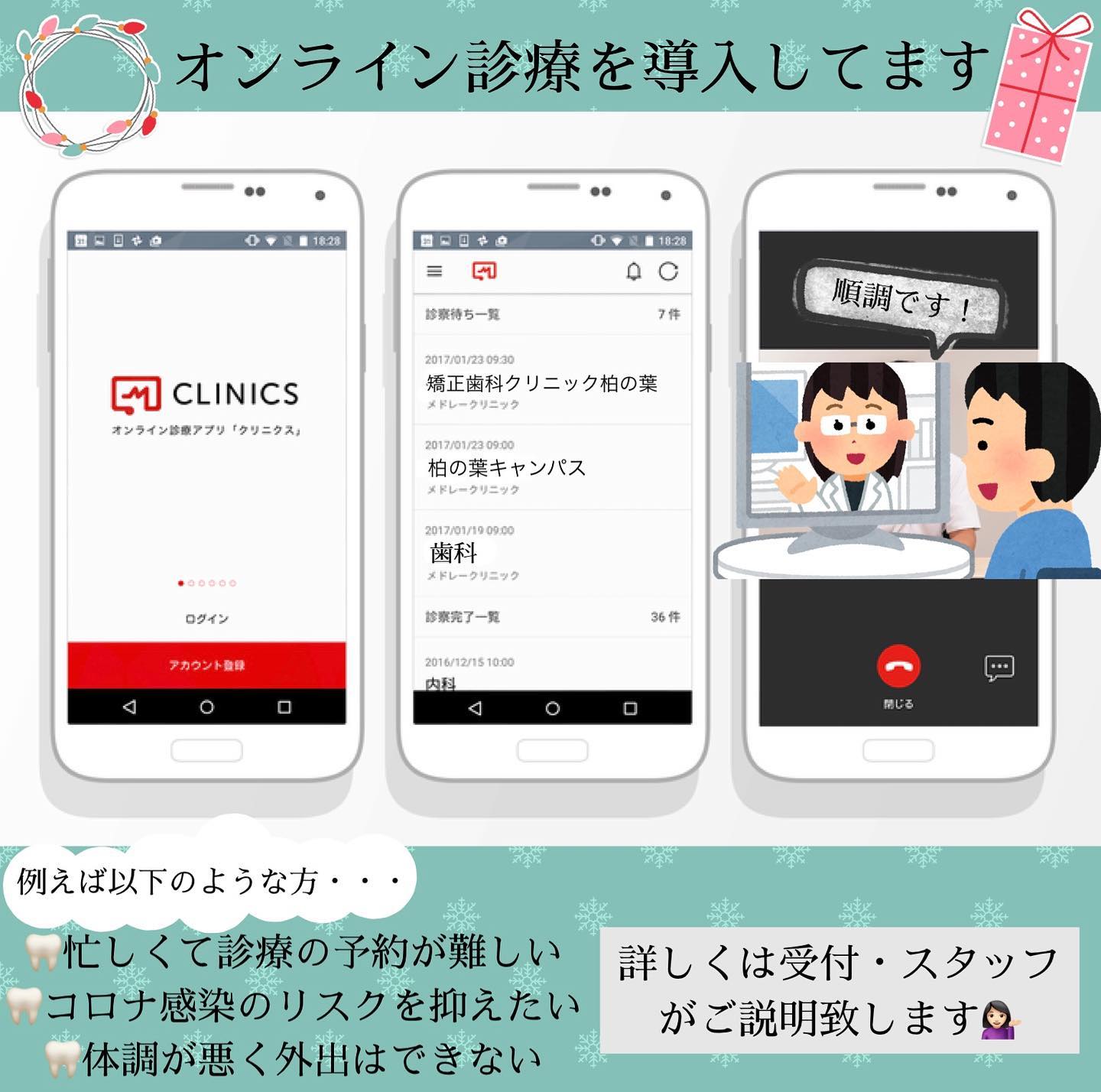 今日はとっても寒いですね🥶感染者もなかなか減らず、まだまだ予防に力を入れていかないといけませんね️当院では、感染リスクを抑えるためにオンライン診療を導入しております️オンライン診療はクリニックに来院しなくてもスマートフォンの画面越しで診察が可能になりますので、※来院されるのが難しい方※外出が難しい方※コロナ感染リスクを避けたい方※矯正装置が壊れたなどの急患対応※予約は先だけど今の状態を見てほしいなど、どんな方でもオンラインにて診察が可能になり... -