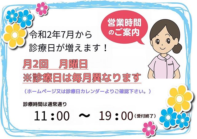 矯正歯科クリニック柏の葉よりお知らせです来月7月より月曜日の診療日が増えます!診療日は毎月異なりますので、ホームページ又は、診療カレンダー、インスタグラムを御覧ください月曜日の診療時間は通常通り、11時00〜19時00(受付終了)になります!#矯正歯科クリニック柏の葉#矯正専門医#マウスピース矯正#小児矯正#表側矯正#裏側矯正#柏の葉キャンパス駅#徒歩4分#人生がときめく矯正を