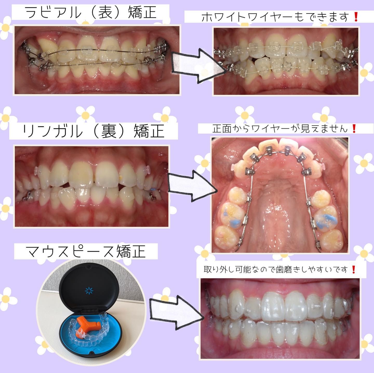 こんにちはあっという間に6月ですねほぼ緊急事態宣言が出されている中、2021年も半分過ぎますね手洗いうがいを徹底し感染しないよう気をつけていきましょう️主な矯正の種類のご紹介ですラビアル(表)の矯正月に1度来院していただき、クリーニングや調整を行います❣️ワイヤーをホワイトワイヤーに変更できますリンガル(裏)の矯正正面から見ても全くワイヤーが見えません!ラビアルと同様月に1度の来院でクリーニングを行いますマウスピース矯正1日20時間以上の装着をお願い... -