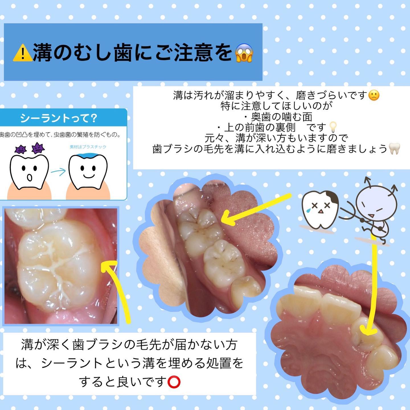 クリスマスも終わり、今年も残すところ5日ですね️今日は磨きづらくむし歯になりやすい《溝》についてお話します😈奥歯の噛む面や、前歯の裏側等には溝があります!溝は汚れが溜まりやすく、磨きづらいのでむし歯になりやすいところ️歯ブラシの毛先がしっかり当たるように気をつけたり、溝が深い方はシーラントという溝を埋める処置をすると良いです️年末年始は食生活が乱れやすい時期なので、おうちでのケアをしっかりしてむし歯を予防しましょう...