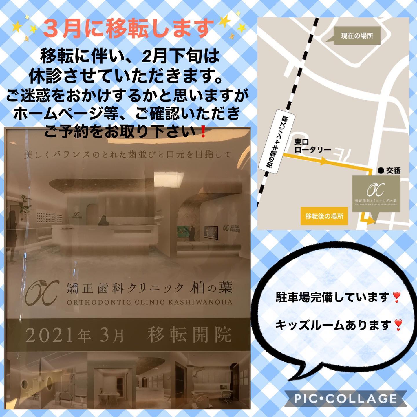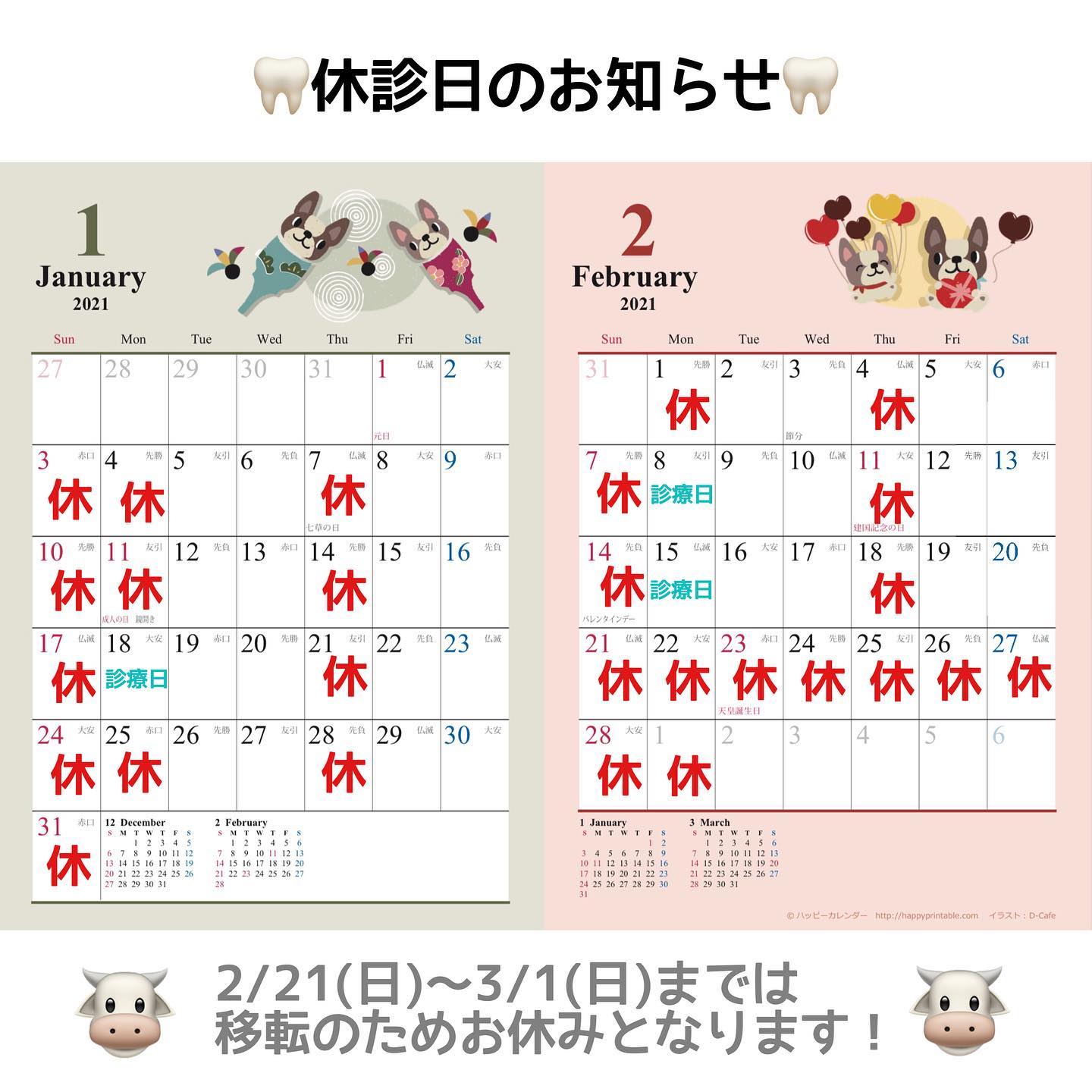 1月・2月の休診のお知らせ2021年が始まりました!今年もよろしくお願いします🤲1月、2月の月曜の診療日は、1月18日、2月8日、2月15日となっております※移転のため2月21日〜 3月1日までお休みとなりますよろしくお願いします!#柏の葉矯正歯科クリニック#矯正歯科医#マウスピース矯正#小児矯正#拡大矯正#表側矯正 #裏側矯正#柏の葉キャンパス #徒歩4分 #人生がときめく矯正を#山崎 -