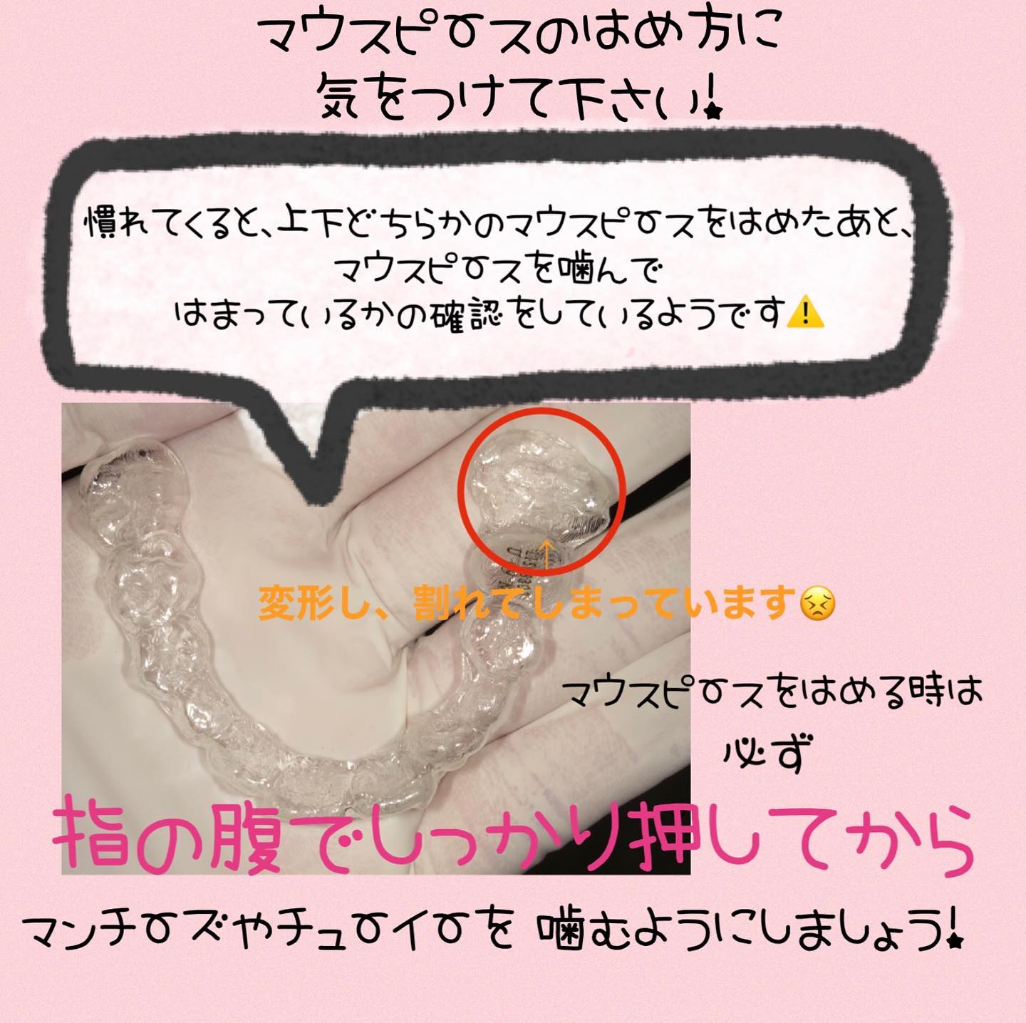 寒い日が続きますね乾燥もしているので引き続き手洗いうがいをし体調管理をしていきましょう️マウスピース矯正をされている方に確認です️マウスピースをはめる時どのようにはめていますか?マウスピースを前歯に合わせてはめた後、奥歯を合わせていきます!その際に絶対に噛んでいれないようにして下さいマウスピースが変形してしまったり、割れてしまうおそれがあります。変形したままはめているとお口の中を傷つけてしまったり、矯正力も落ちてしまいますマウスピースを合わせた後、し... -