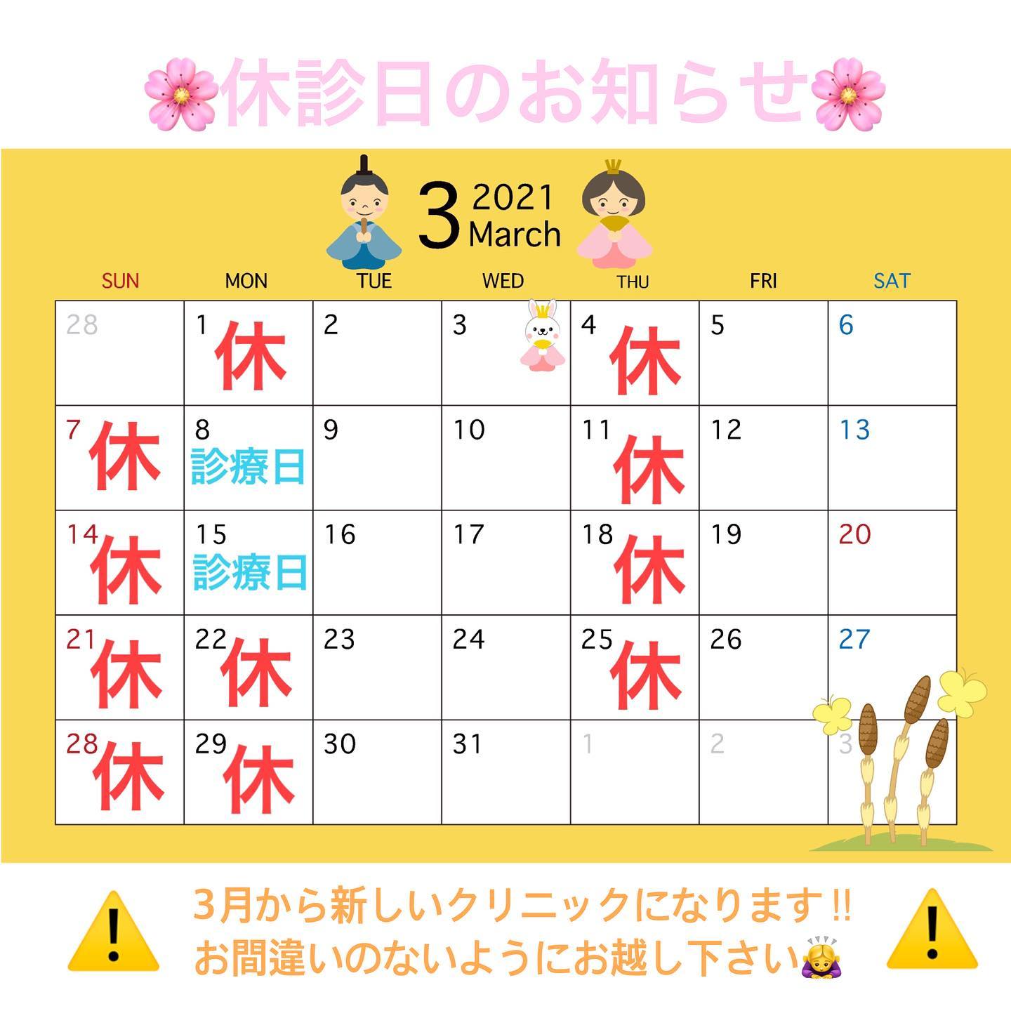 あけましておめでとうございます️今年もよろしくお願いします❣️去年に引き続きコロナの感染者数が増えてきていますが、皆さまおかわりありませんか?当院では、オンライン診療も行っていますので外出を控えたい方やお仕事が忙しくお越しになれない方などご利用下さい次回のご予約が3月になる方もいらっしゃるのでInstagramでもお伝えさせていただきます♪当院は3月に移転開業いたします移転に伴い2月下旬より休診させていただきますご予約等でご迷惑をおかけしてしまいますが、ホー... -